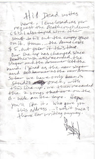 SupprimerI have tried to write this letter many times and given up. Still I need to ask a question. Does anyone happen to have any of his old letters? Or even remember them? The letters I am talking about would have been written to celebrity fan clubs. The first half of the letter would appear as normal and happy fan mail and lull the reader into and false sense of flattery... but the second half of the letter would suddenly take a dark and terrible turn... and might end with Pelle explaining in great detail how he was going rip their asshole through their nostrils with a set of fishhooks chained to a cannon ball. Stuff like that. There was probably a lot of them. The problem is he likely sent all the originals.